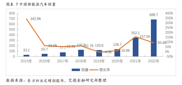 2023年1-7月,中國新能源汽車銷量452.6萬輛,同比增長41.7%。根據(jù)工信部等七部門聯(lián)合發(fā)布的關(guān)于汽車行業(yè)穩(wěn)增長工作方案(2023-2024年)的文件。方案提出,2023年中國汽車銷量有望達(dá)到2700萬輛左右,同比增長約3%,其中新能源汽車銷量將達(dá)到900萬輛左右,同比增長約30%。