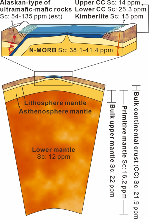 圖1 地殼及上地幔中的鈧平均豐度