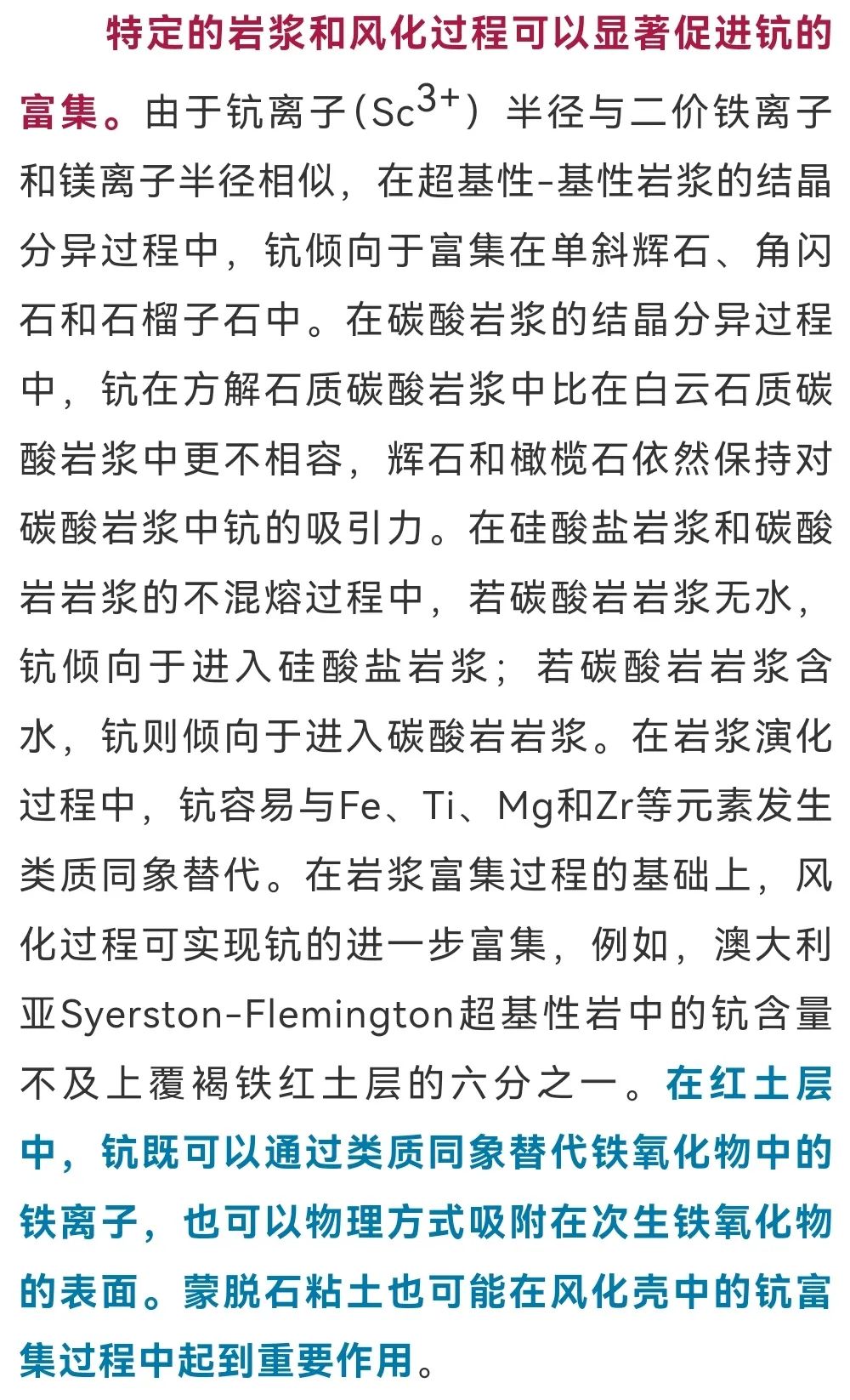 鈧(Sc)是巖石圈中的分散金屬,平均豐度為16-22 ppm(圖1)。因其廣泛應(yīng)用于固態(tài)燃料電池、鋁合金制造,并在激光晶體、濾波器等領(lǐng)域具有應(yīng)用前景,鈧被很多國(guó)家列入關(guān)鍵金屬或戰(zhàn)略金屬資源。目前鈧氧化物的全球年產(chǎn)量仍局限在數(shù)十噸,因此市場(chǎng)價(jià)格居高不下。隨著市場(chǎng)需求的增加,鈧資源的勘察、礦物學(xué)及礦床學(xué)研究以及應(yīng)用研究等也持續(xù)深入開展。基于已發(fā)表的文獻(xiàn),蘭州大學(xué)劉尚博士與中科院地質(zhì)地球物理所范宏瑞研究員等對(duì)鈧資源的礦床分類、典型富集過程和大地構(gòu)造環(huán)境等信息進(jìn)行了綜述。